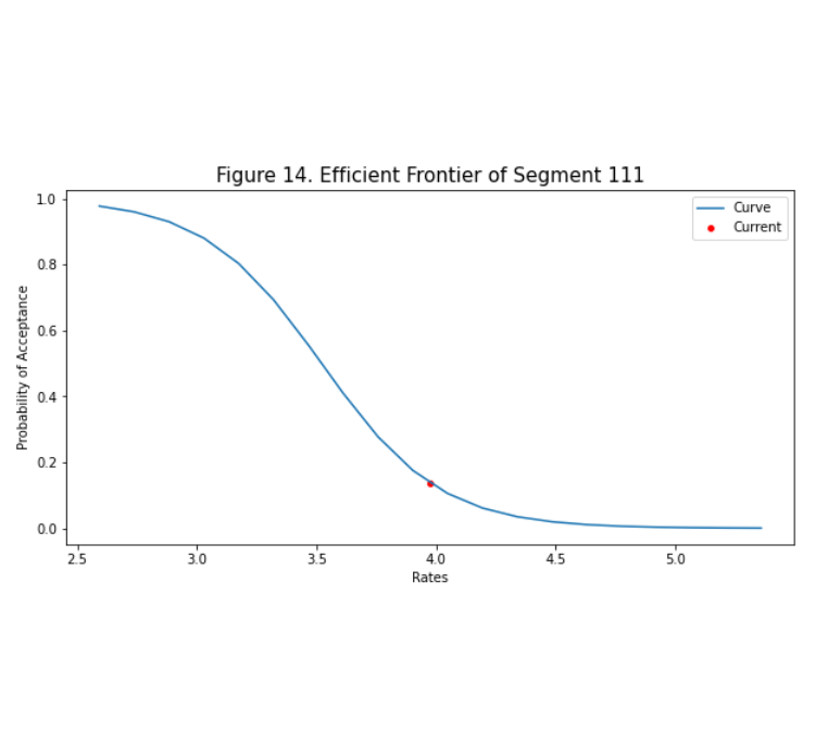 Loan Customer Segmentation and Price Optimization The project finds the optimum rates for multiple customer segments of a E-Car Loan company. I used non-linear programming to find the efficient frontier for each segment based on the risk of default, competitor rates, duration of loan, etc. to maximize the overall profit, resulting in a 100% increase. |